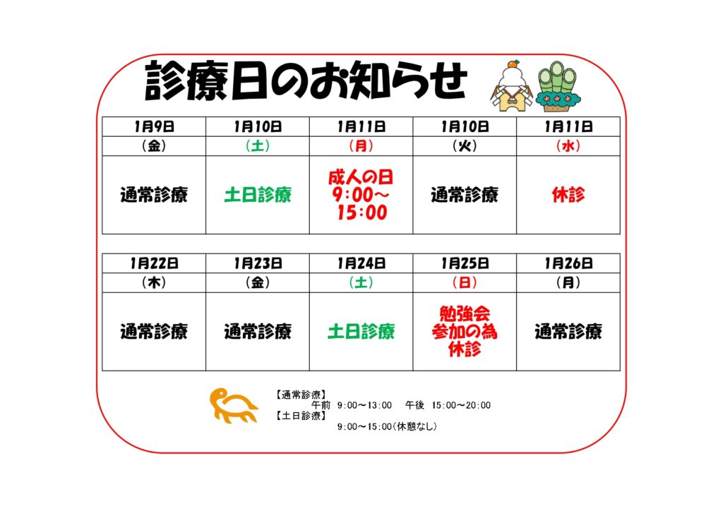1月の休診日